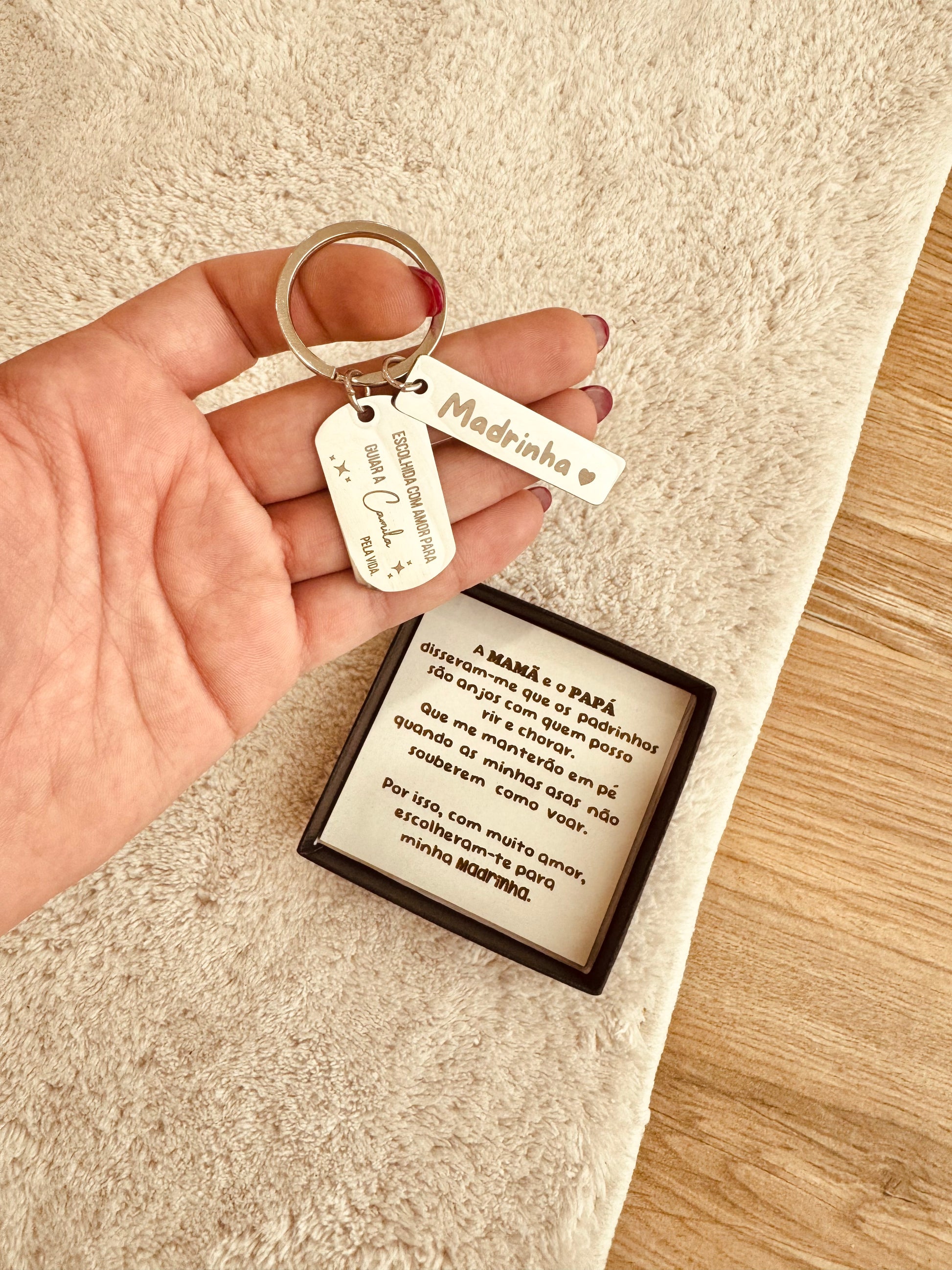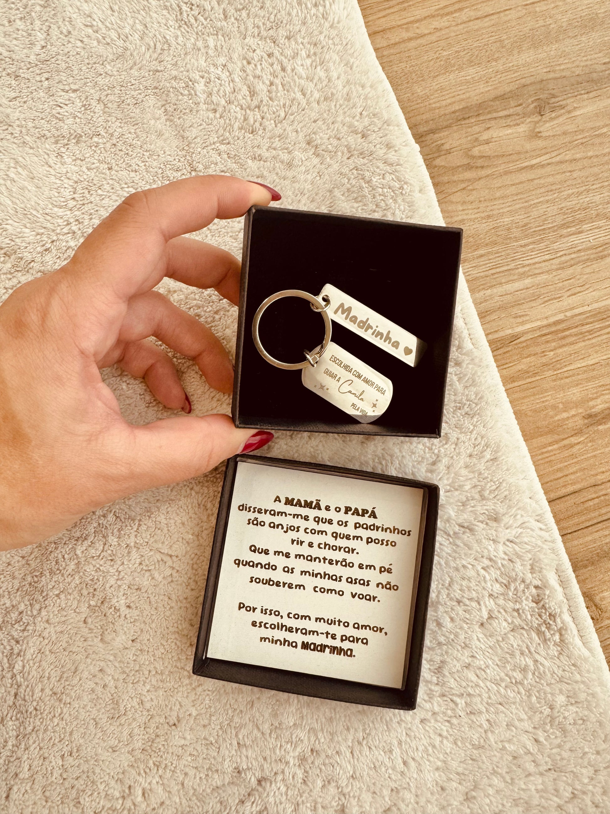 Este porta-chaves é mais do que um simples acessório, é uma forma especial de fazer um pedido inesquecível: “Queres ser minha madrinha?”