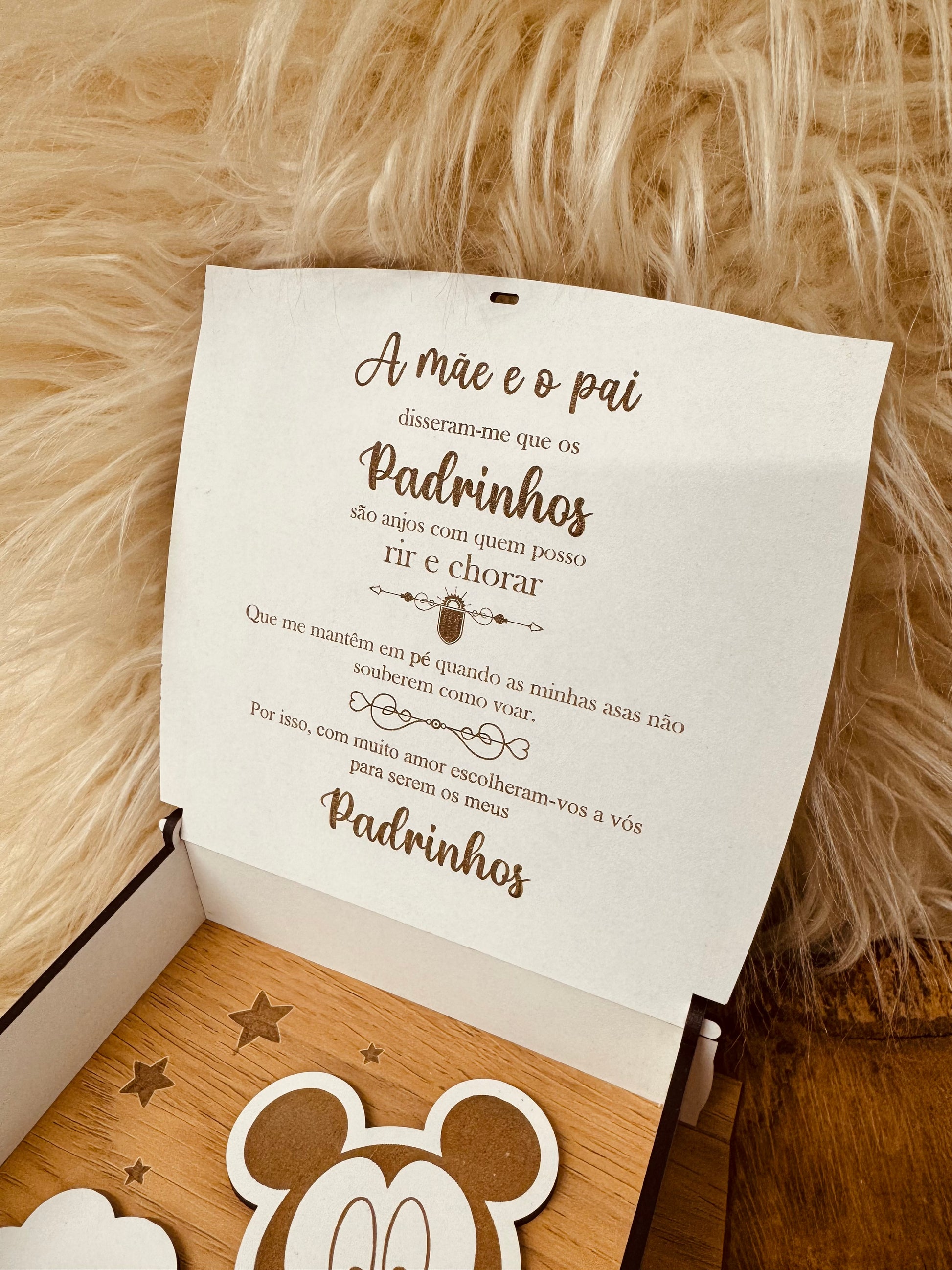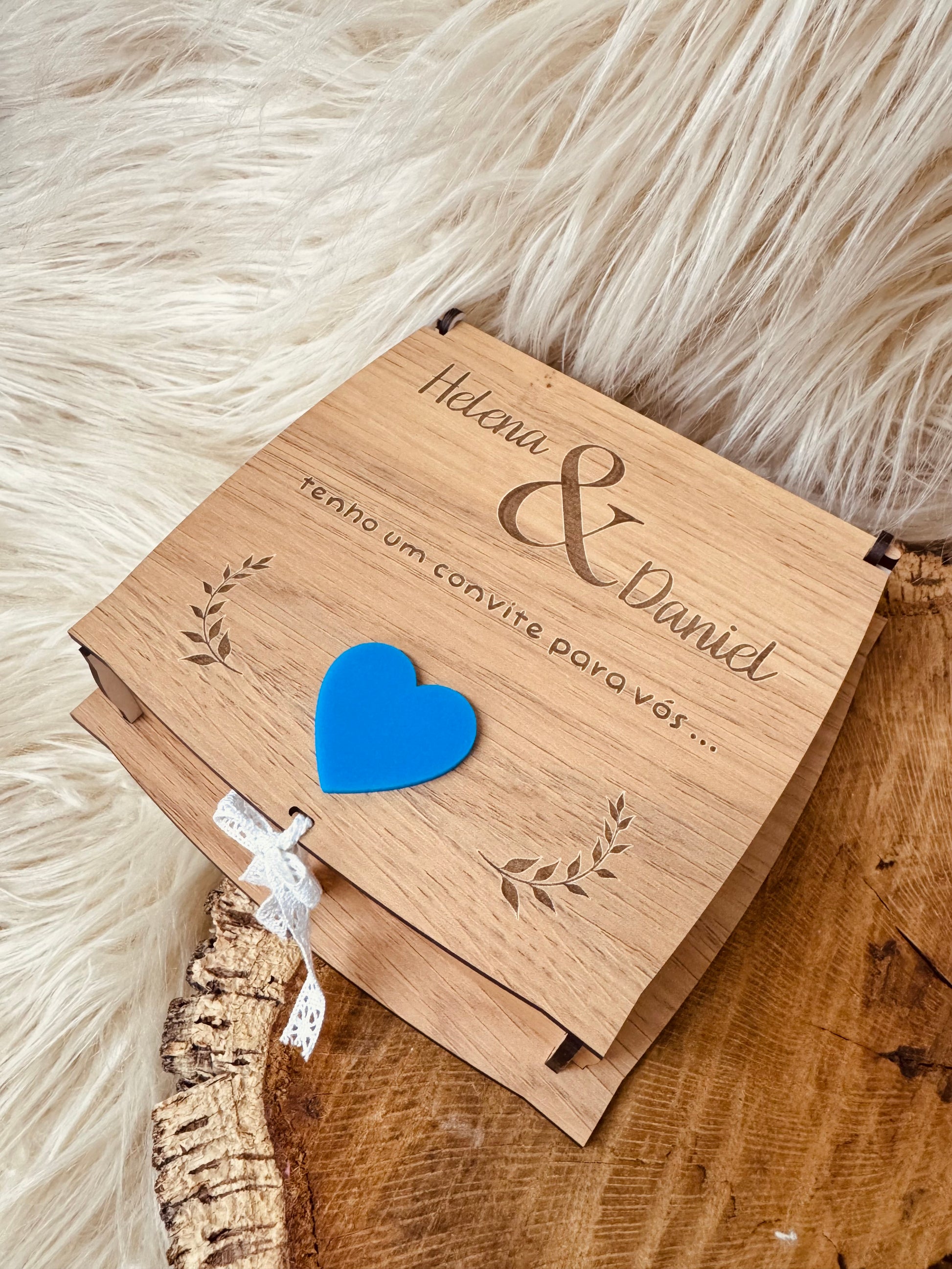 Surpreende os futuros padrinhos com esta caixa convite personalizada, uma forma especial e memorável de fazer o pedido. Um detalhe cheio de carinho que eles vão guardar com emoção e orgulho.