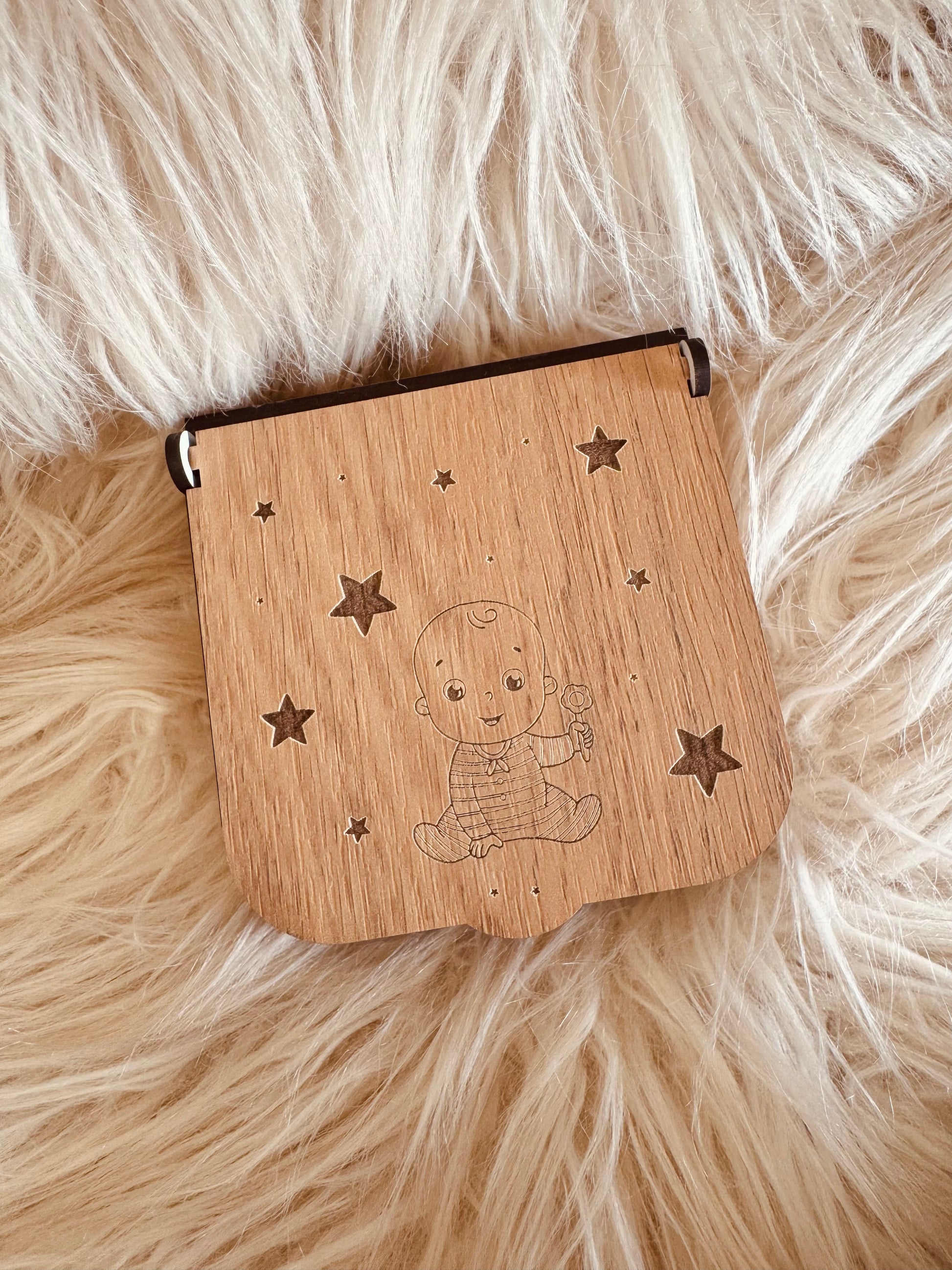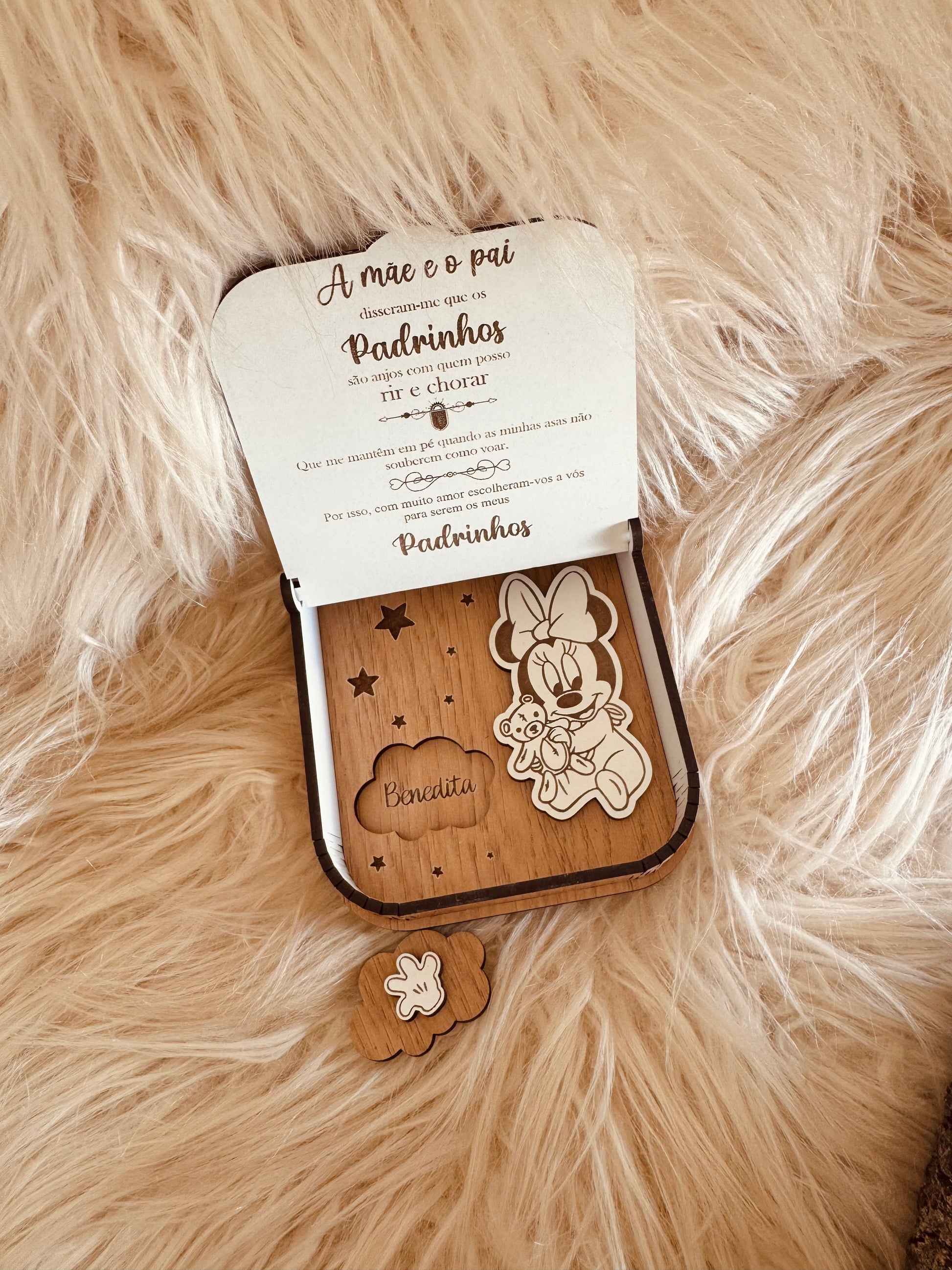 - Personalização: Nome dos padrinhos, mensagem especial, data ou elementos decorativos à tua escolha