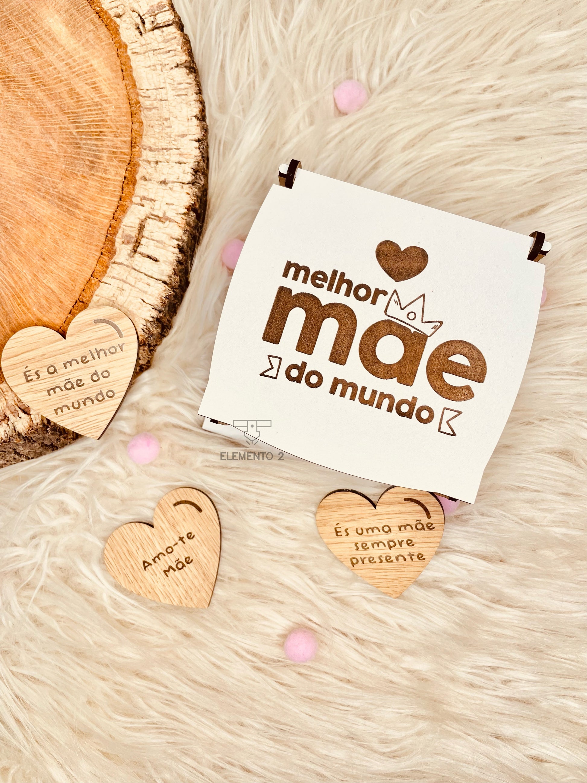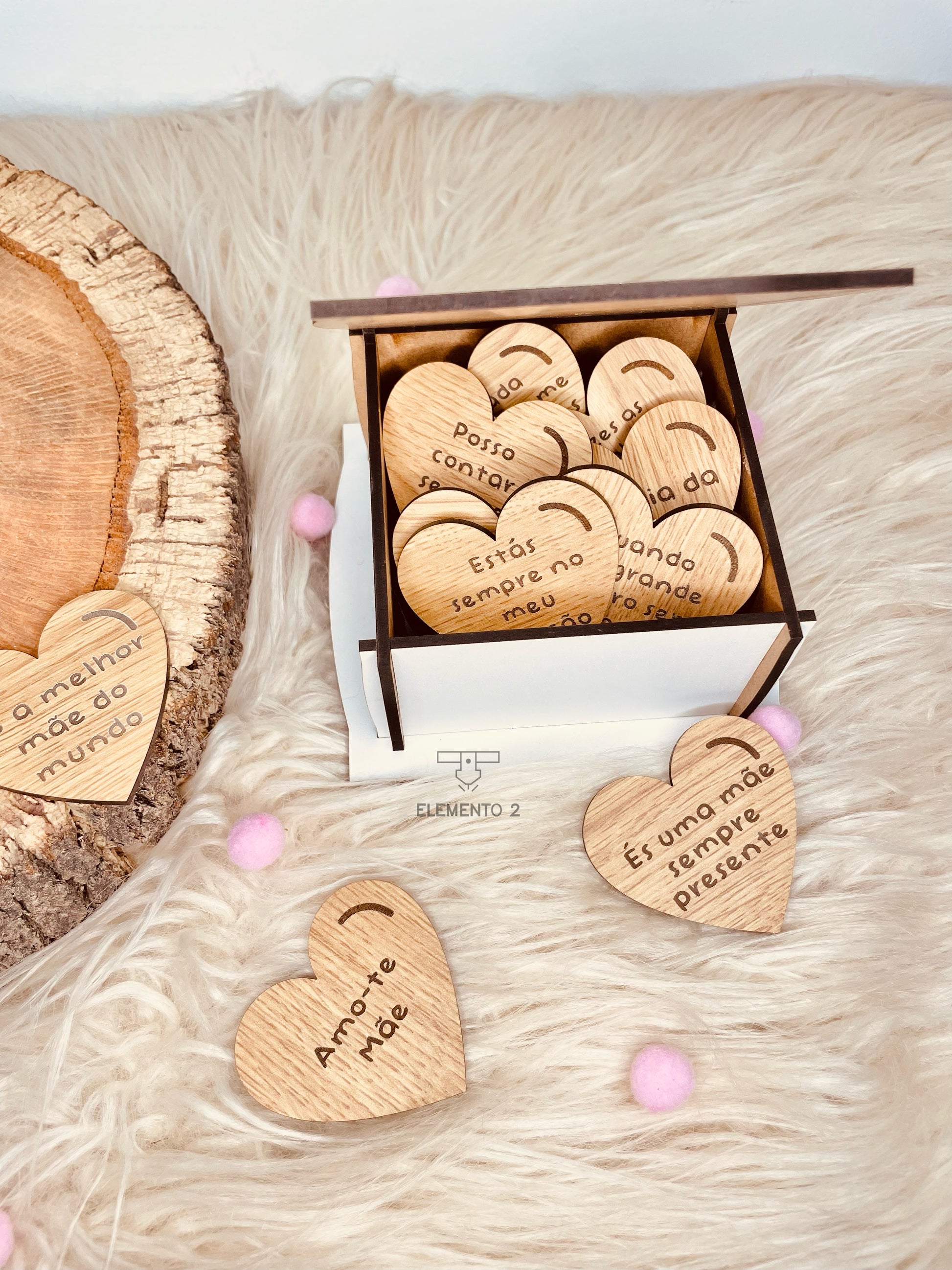 Surpreende a melhor mãe do mundo com esta caixa personalizada, recheada de corações com razões únicas que mostram o quanto ela é especial. Um presente cheio de amor e emoção, perfeito para o Dia da Mãe ou qualquer ocasião.