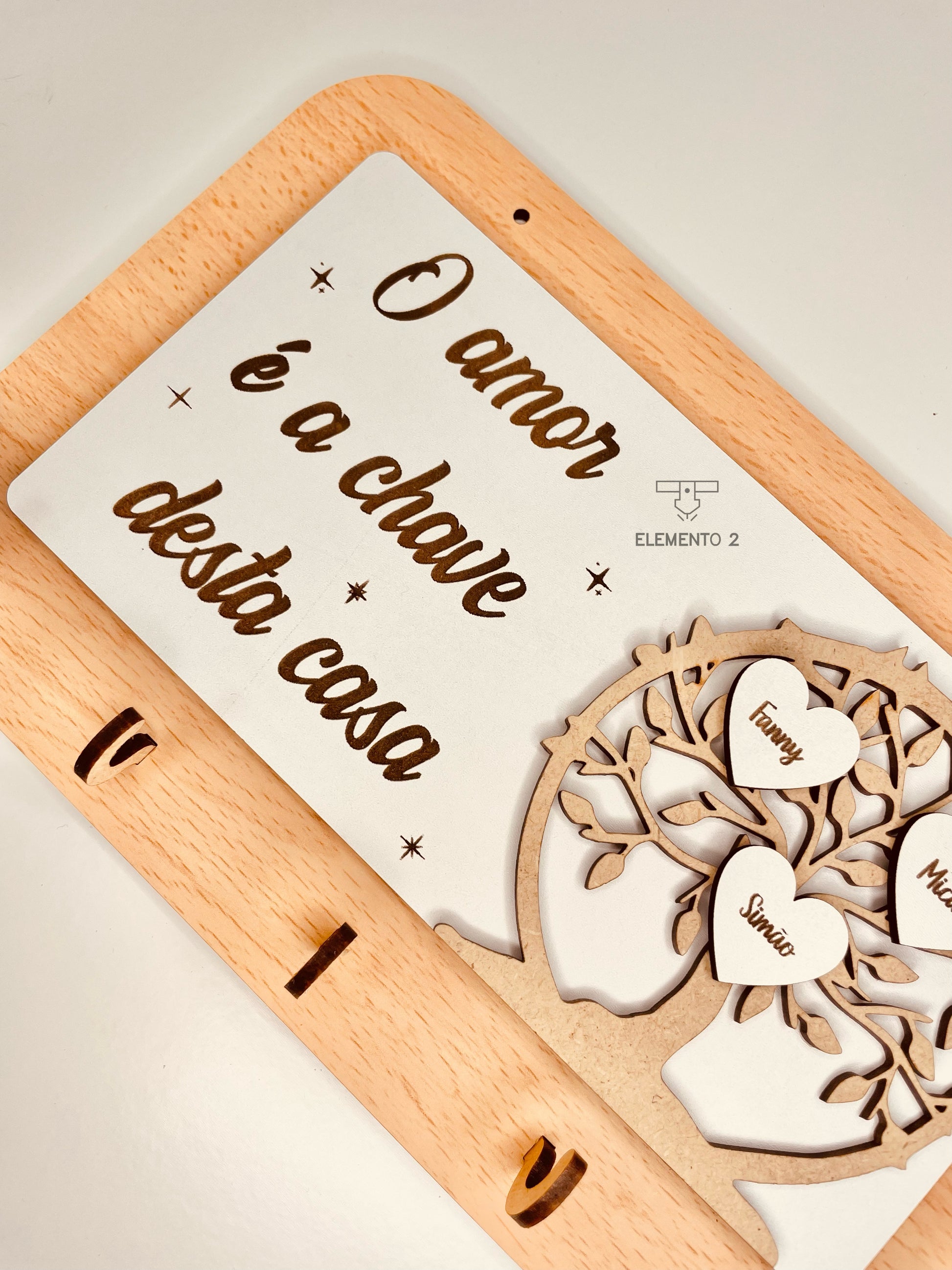 Mantém as tuas chaves sempre organizadas com este suporte de parede personalizado, ideal para dar um toque decorativo e funcional à entrada da tua casa. Um acessório prático, bonito e cheio de personalidade!