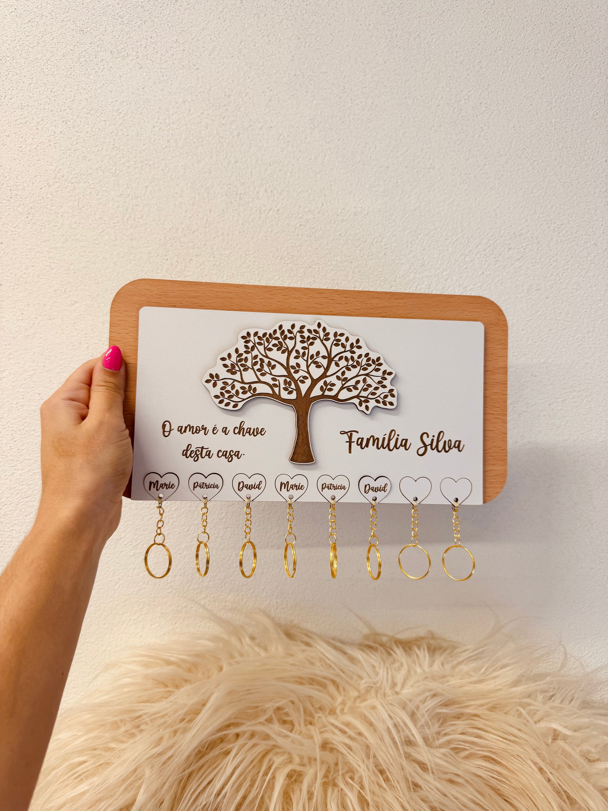 Mantém as tuas chaves sempre organizadas com este suporte de parede personalizado, ideal para dar um toque decorativo e funcional à entrada da tua casa. Um acessório prático, bonito e cheio de personalidade!