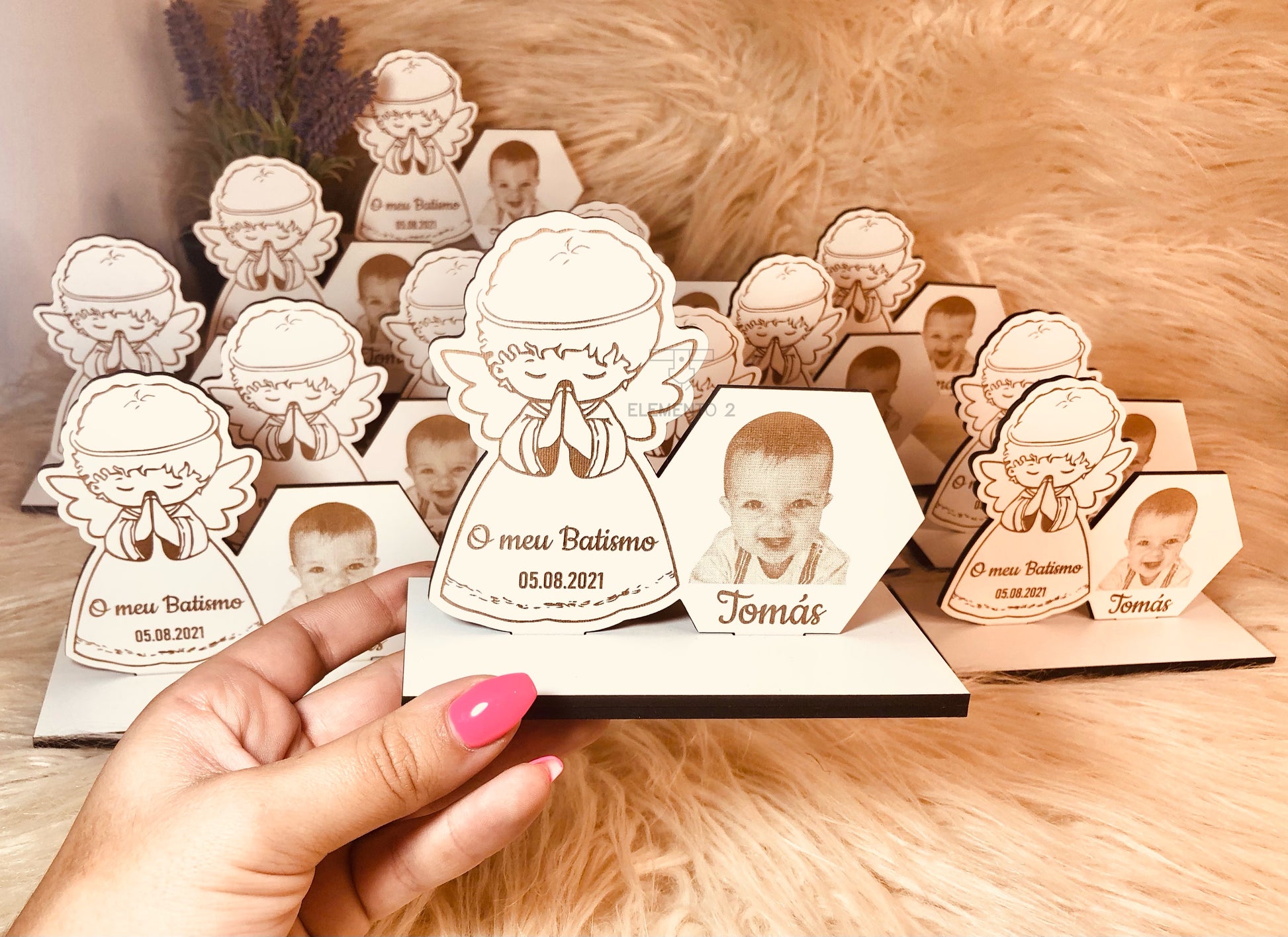 Oferece uma lembrança especial, onde a foto é gravada com todo o detalhe para eternizar um momento único. Perfeito para batizados, comunhões ou para presentear alguém querido.