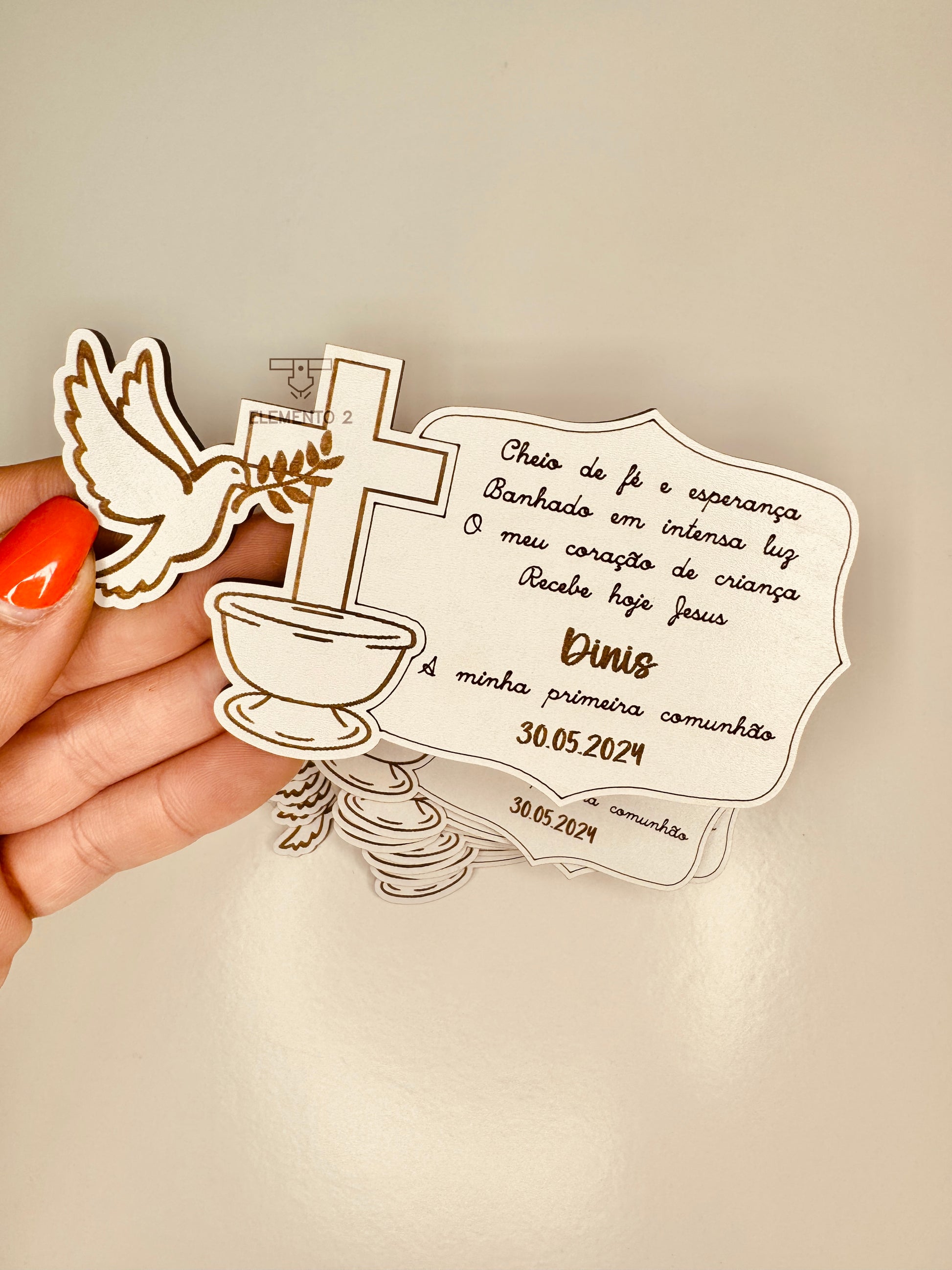 Celebra este momento especial com uma lembrança de Comunhão personalizada, ideal para agradecer a presença e partilhar a importância deste sacramento com quem esteve contigo. Um detalhe simbólico e cheio de fé.