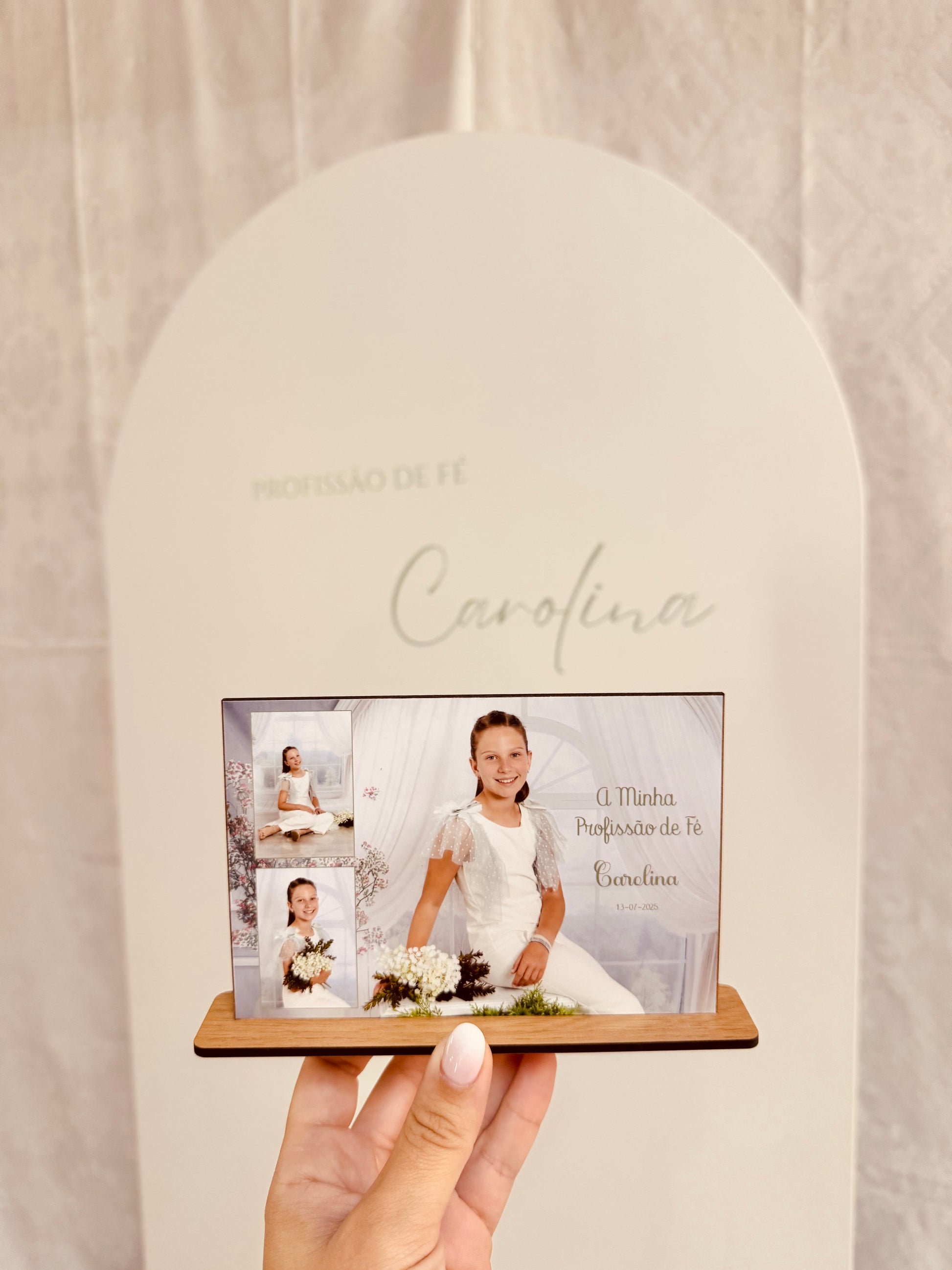 Oferece uma lembrança personalizada com foto, perfeita para eternizar momentos especiais com um toque pessoal. Ideal para batizados, comunhões, casamentos ou simplesmente para surpreender alguém com algo único.