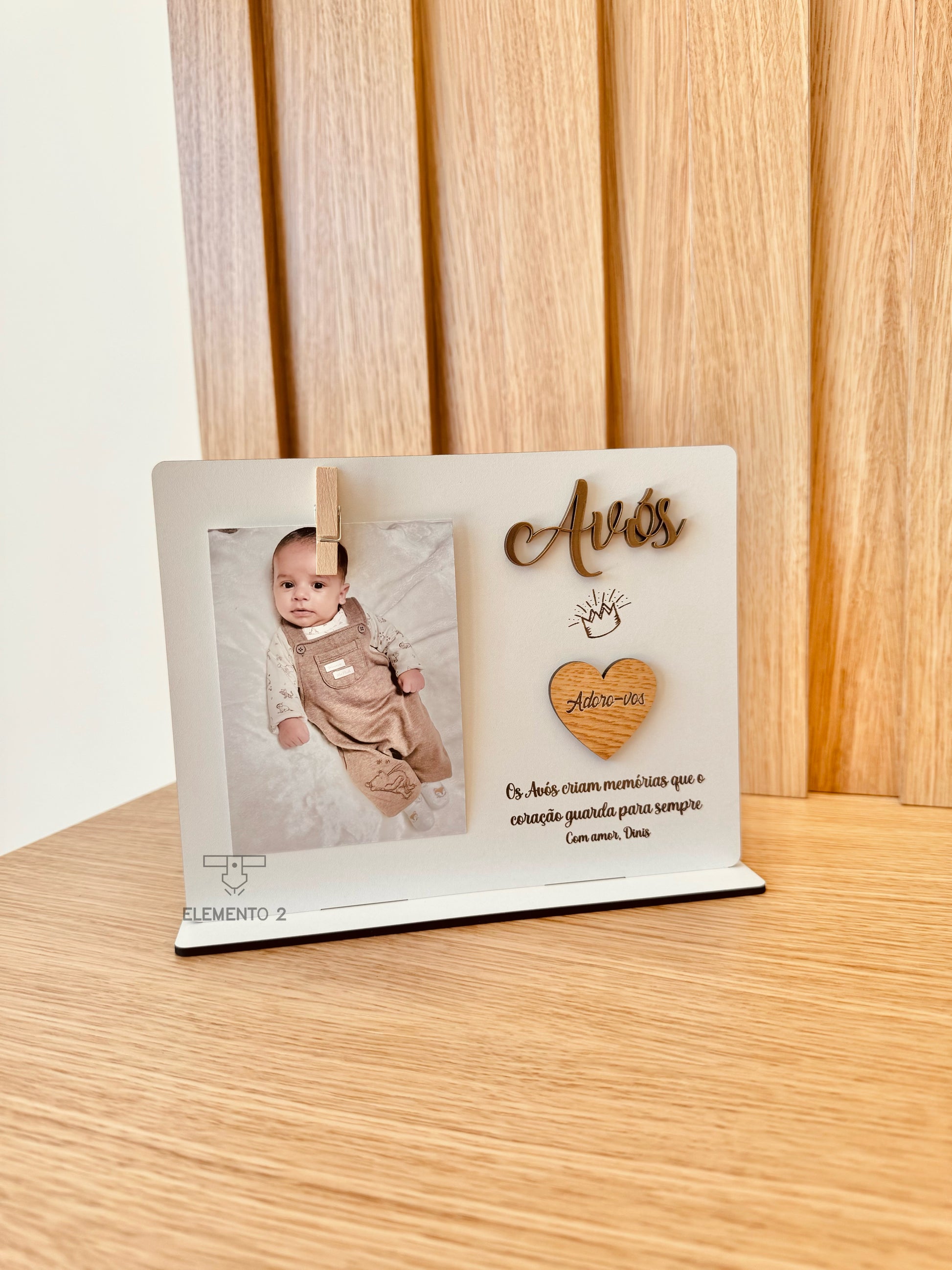 Celebra o amor dos avós com esta moldura personalizada para o Dia dos Avós, com uma mola delicada para colocares uma foto especial. Uma peça cheia de ternura, perfeita para relembrar momentos felizes e agradecer todo o carinho.