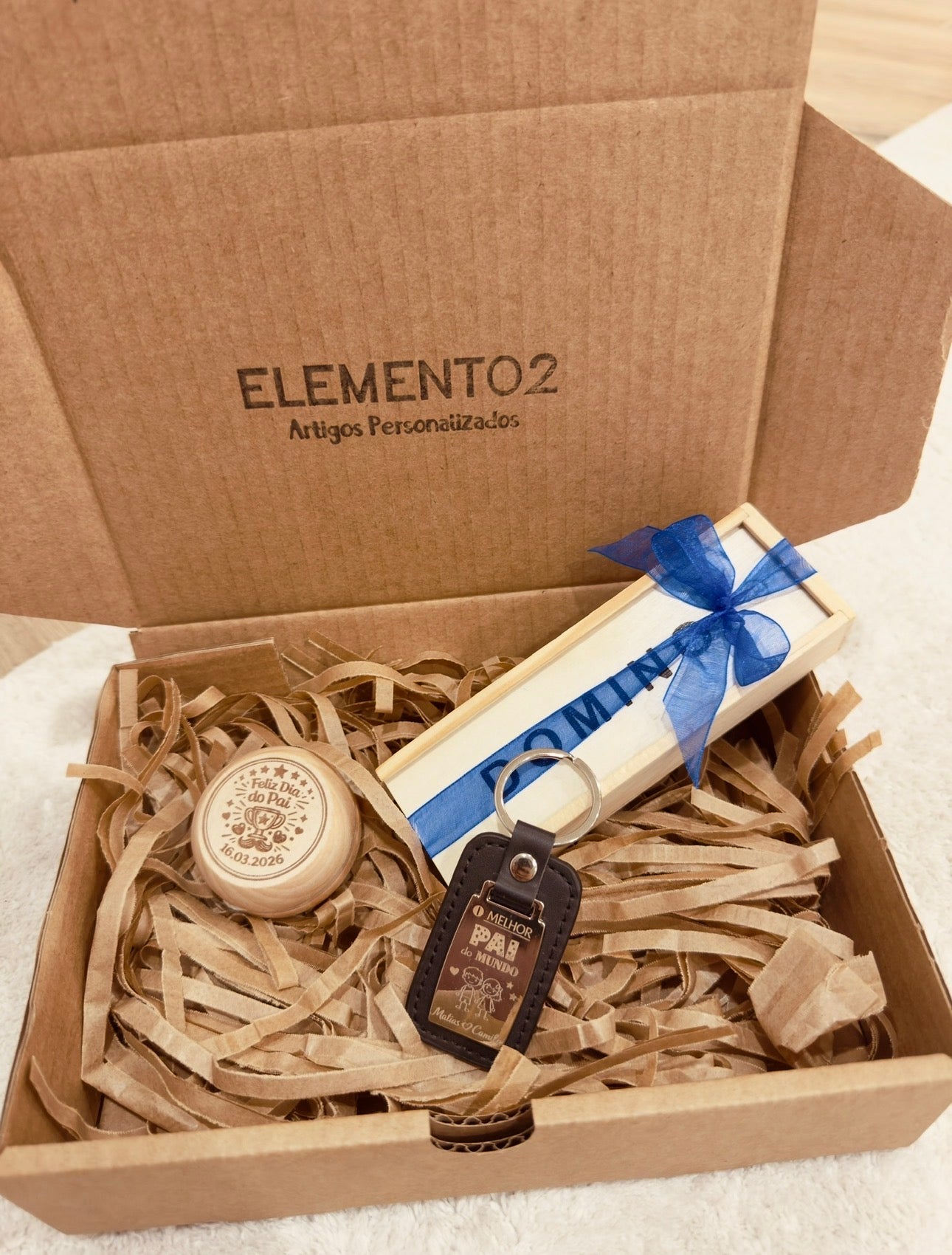 Surpreende o teu Pai com este pack especial que inclui um porta-chaves personalizado, um yoyo e um dominó — um presente cheio de carinho e significado para se divertirem juntos neste dia tão especial.