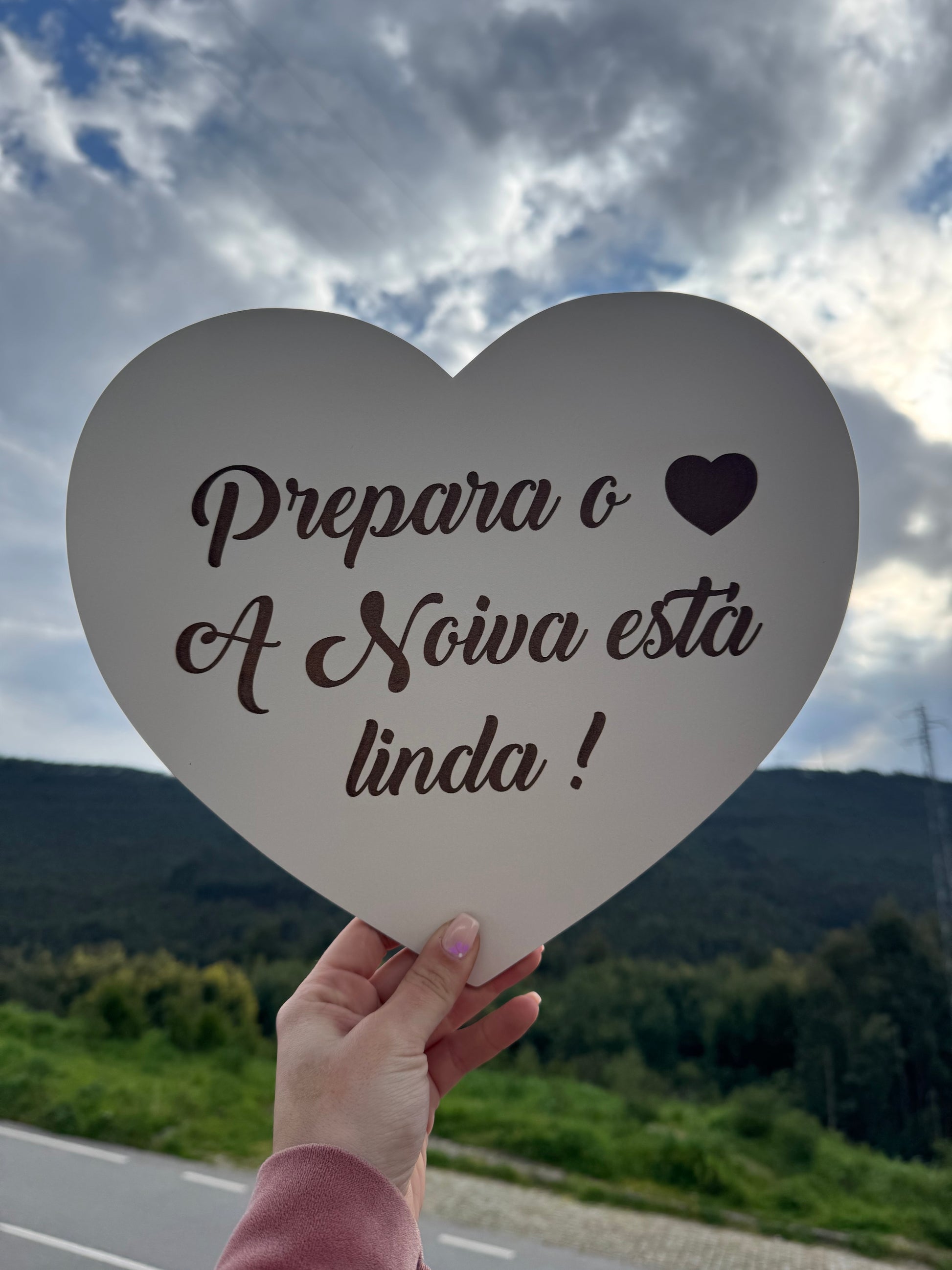 Placa Casamento “Prepara o coração, a noiva está linda”