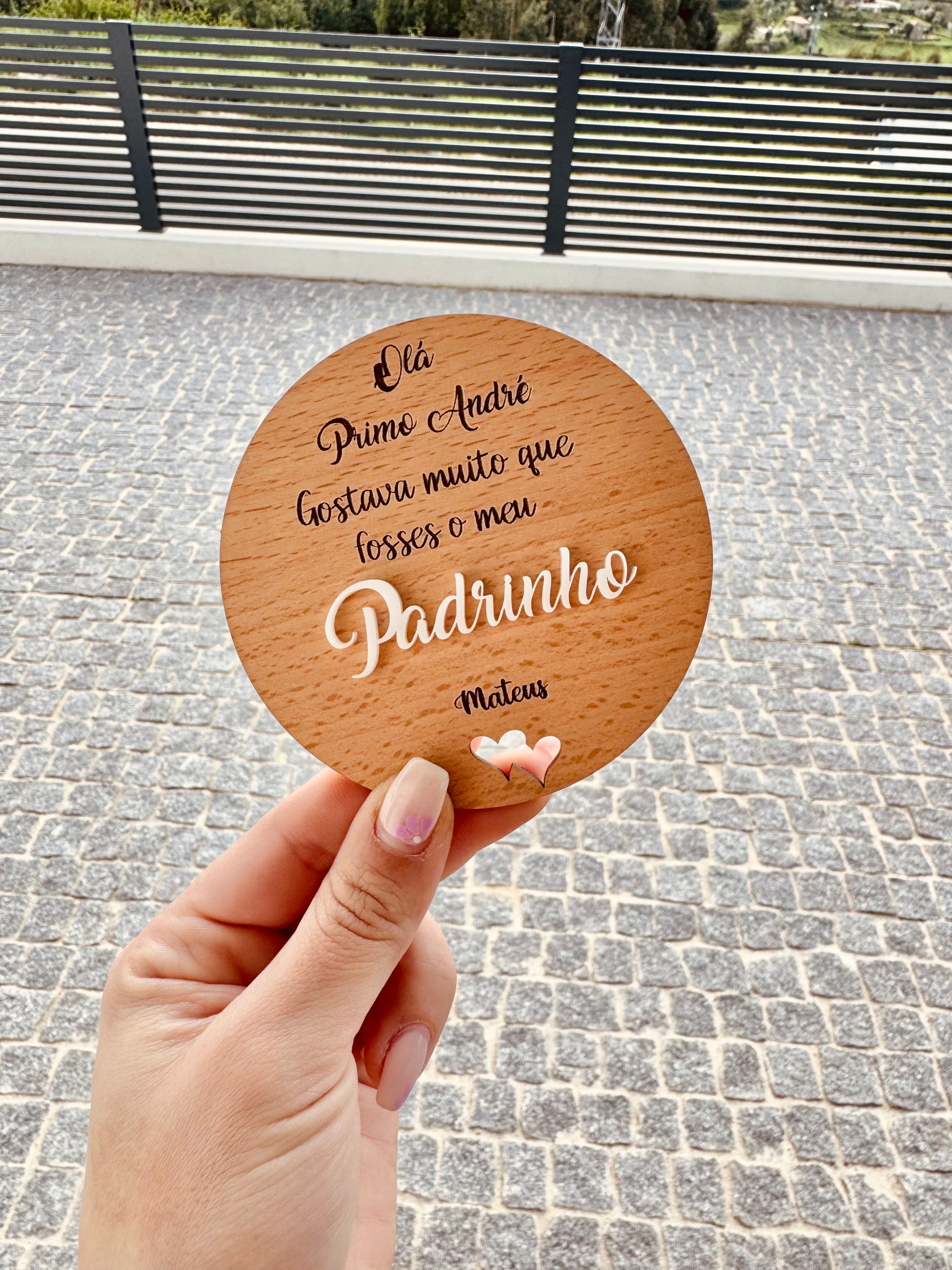 - Personalização: Nome dos padrinhos, mensagem especial, data ou elementos decorativos à tua escolha