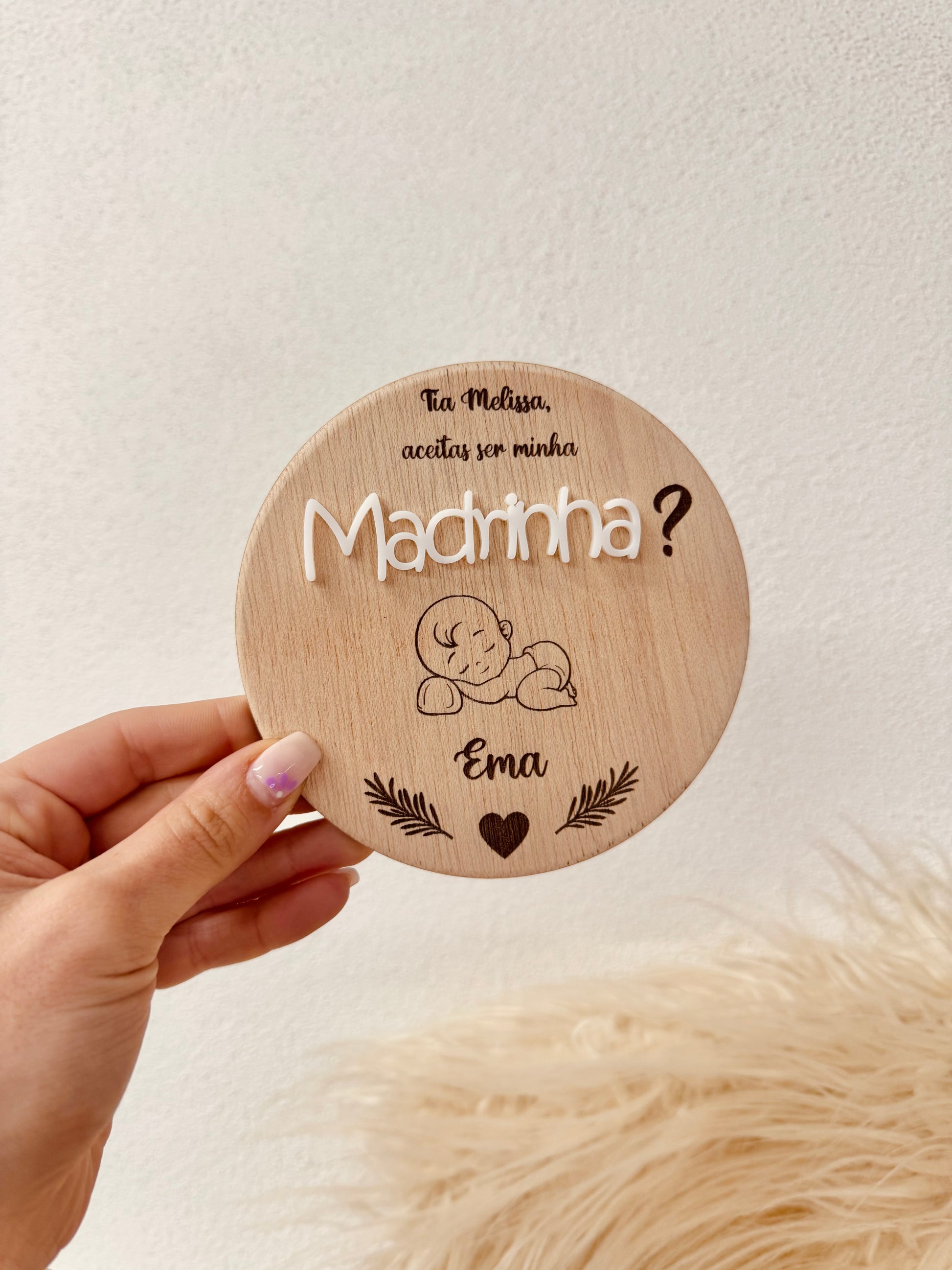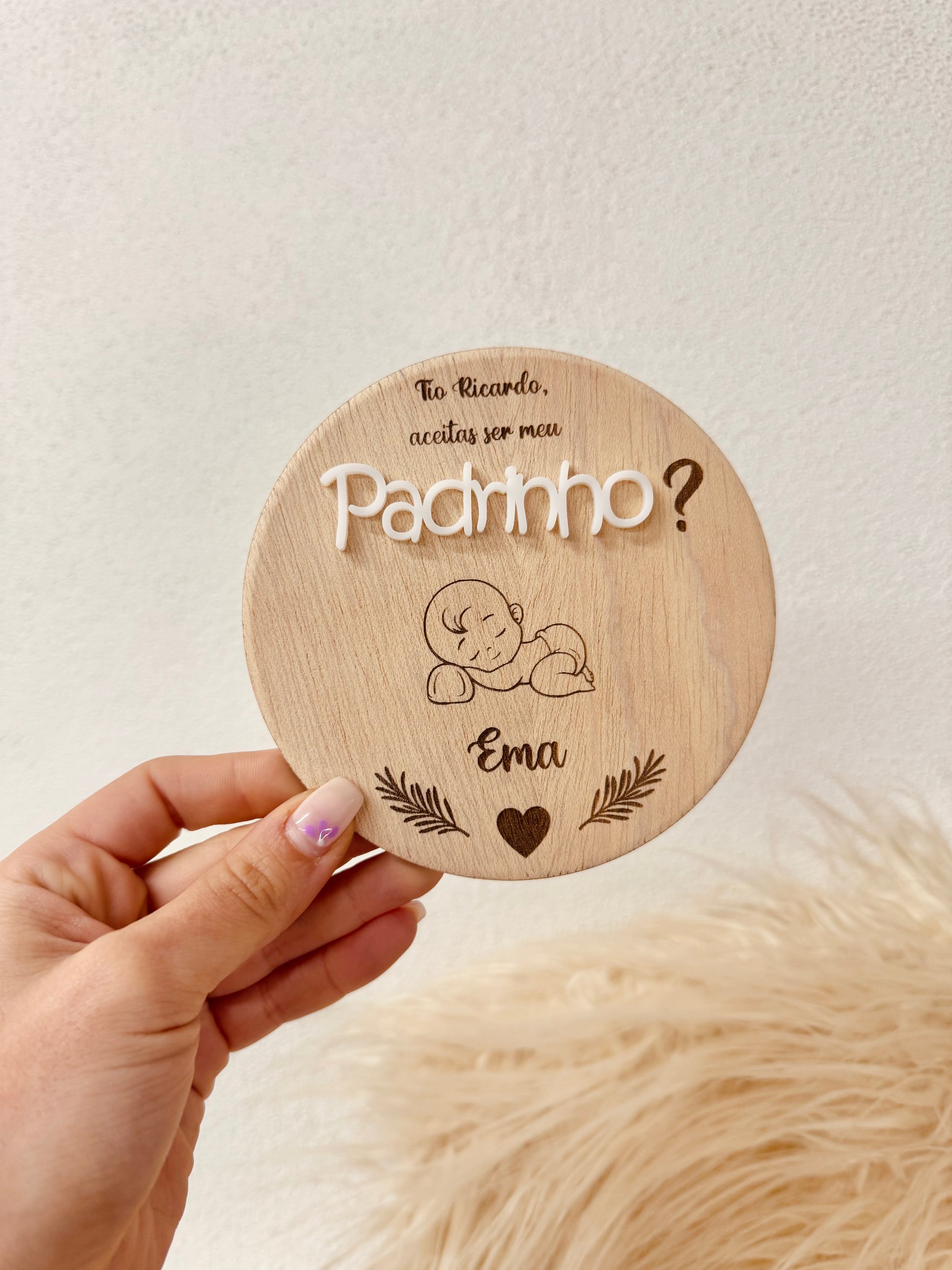 - Personalização: Nome dos padrinhos, mensagem especial, data ou elementos decorativos à tua escolha