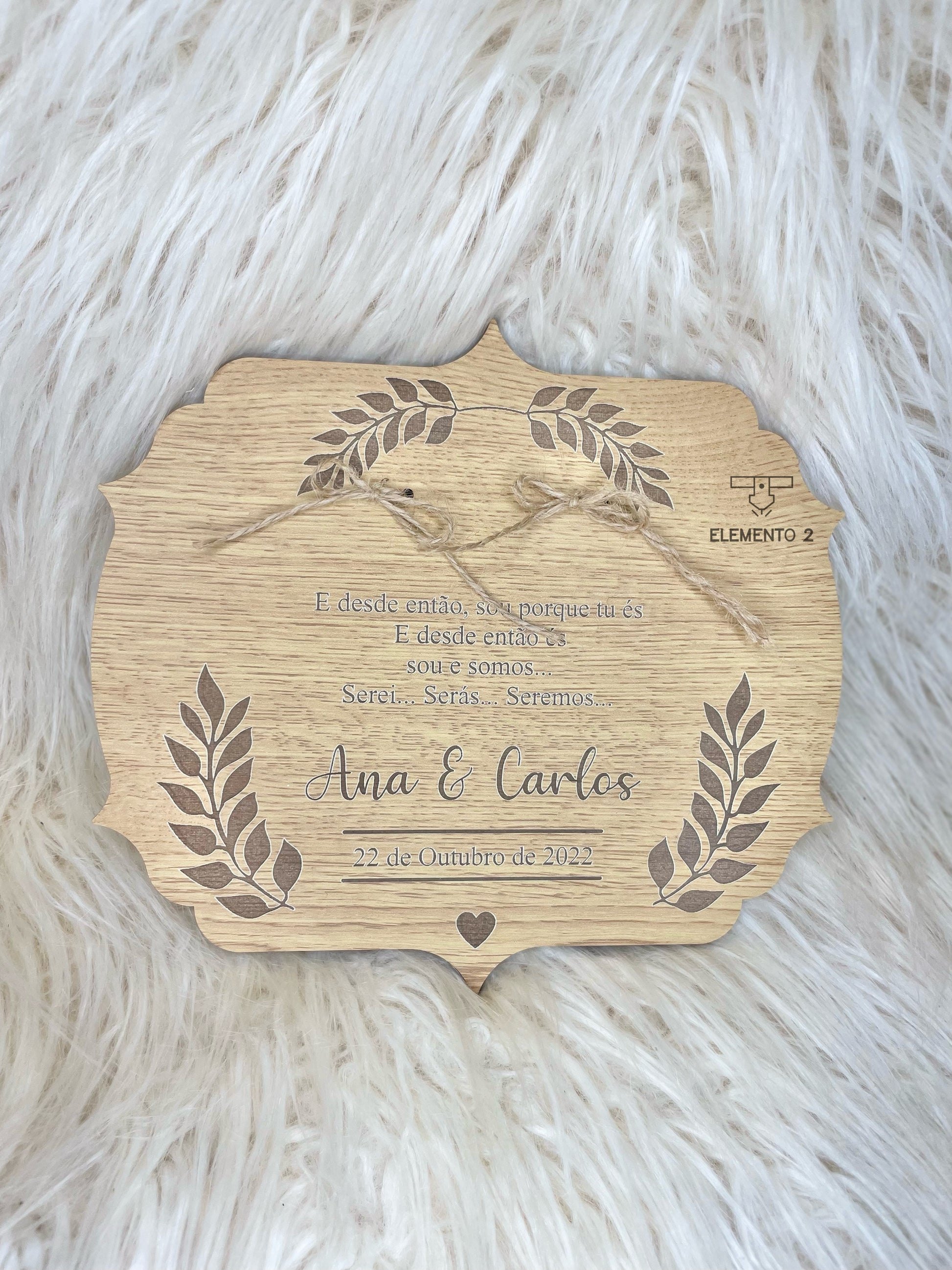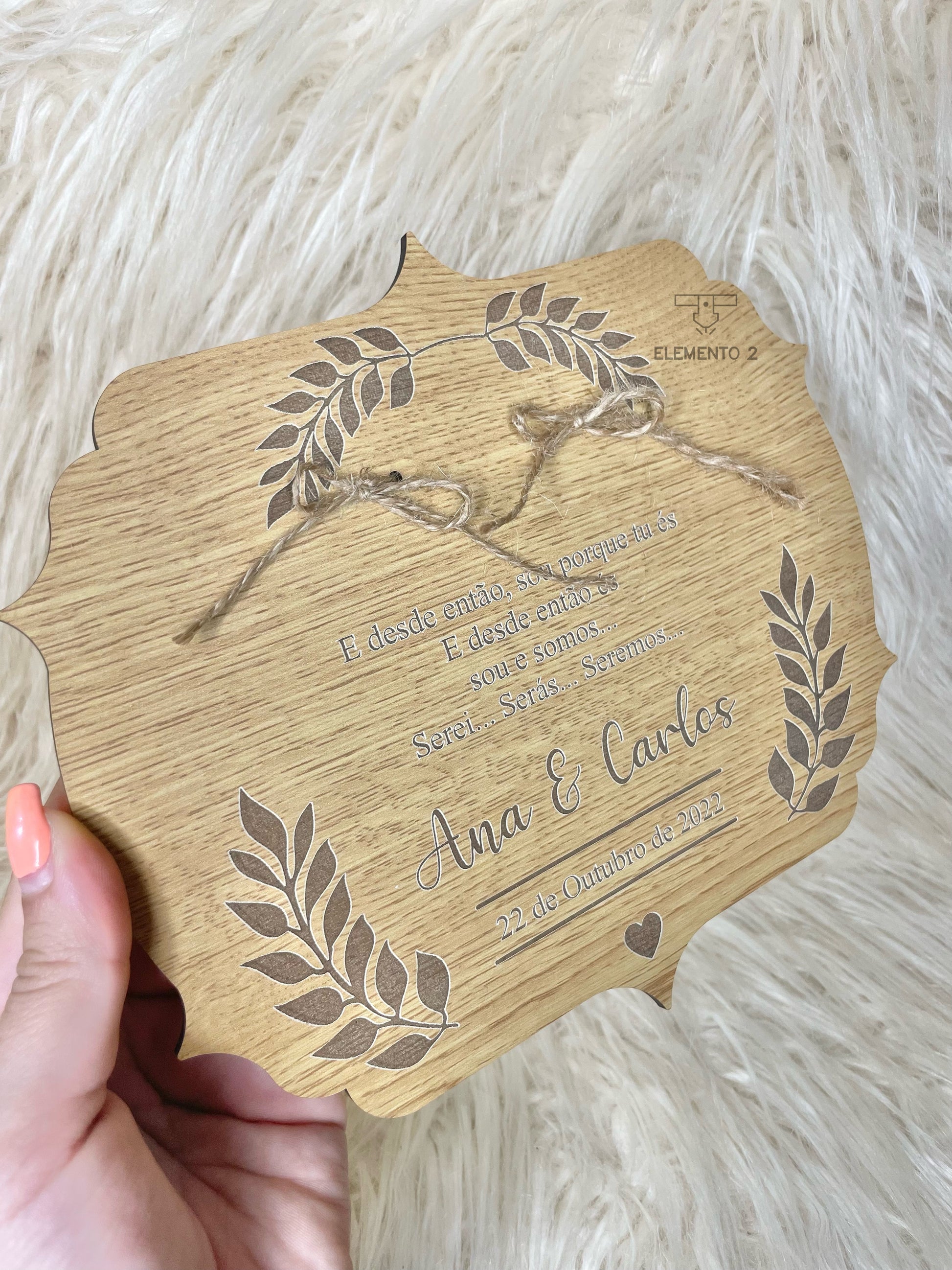 - Personalização: Nomes dos noivos, data ou mensagem à tua escolha