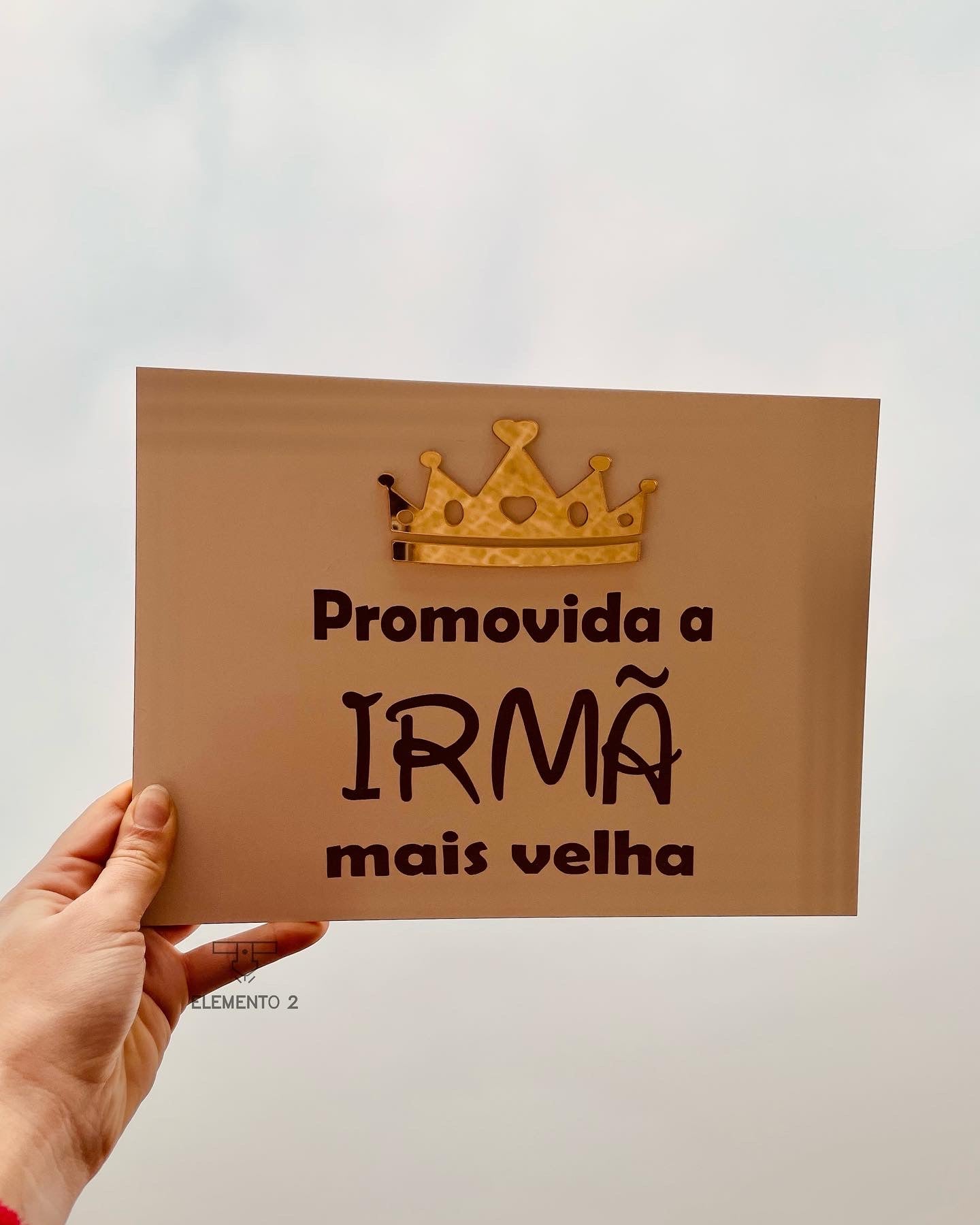 Surpreende com esta placa “Promovida a irmã mais velha”, uma forma doce e divertida de anunciar a chegada de um novo bebé! Um momento único que ficará para sempre guardado no coração da mana crescida.
