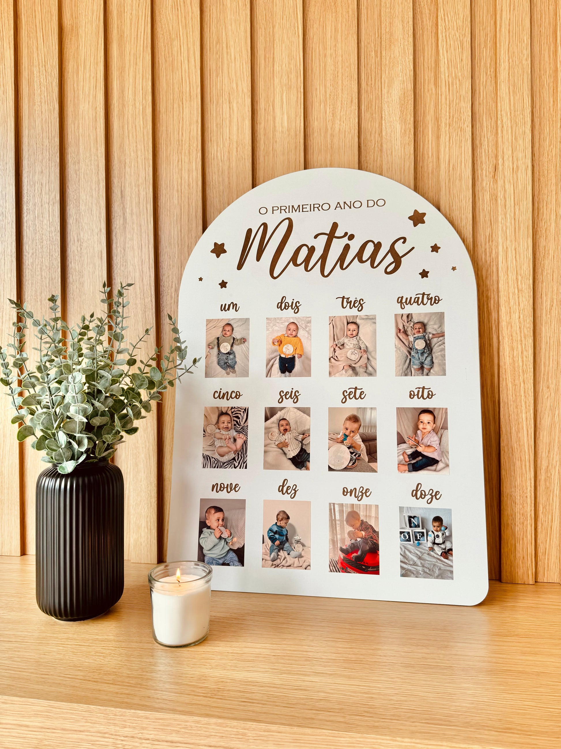 Guarda as primeiras memórias do teu bebé com este quadro personalizado! Uma peça única e cheia de carinho, perfeita para decorar o quarto e celebrar cada mês.
